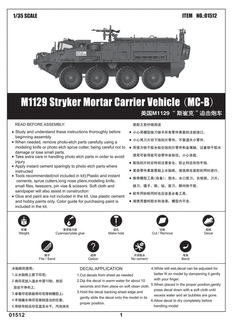 US ARMY ARMOR SERIES KIT 13 1/35 STRYKER M1129 WITH INTERIOR KIT SALES