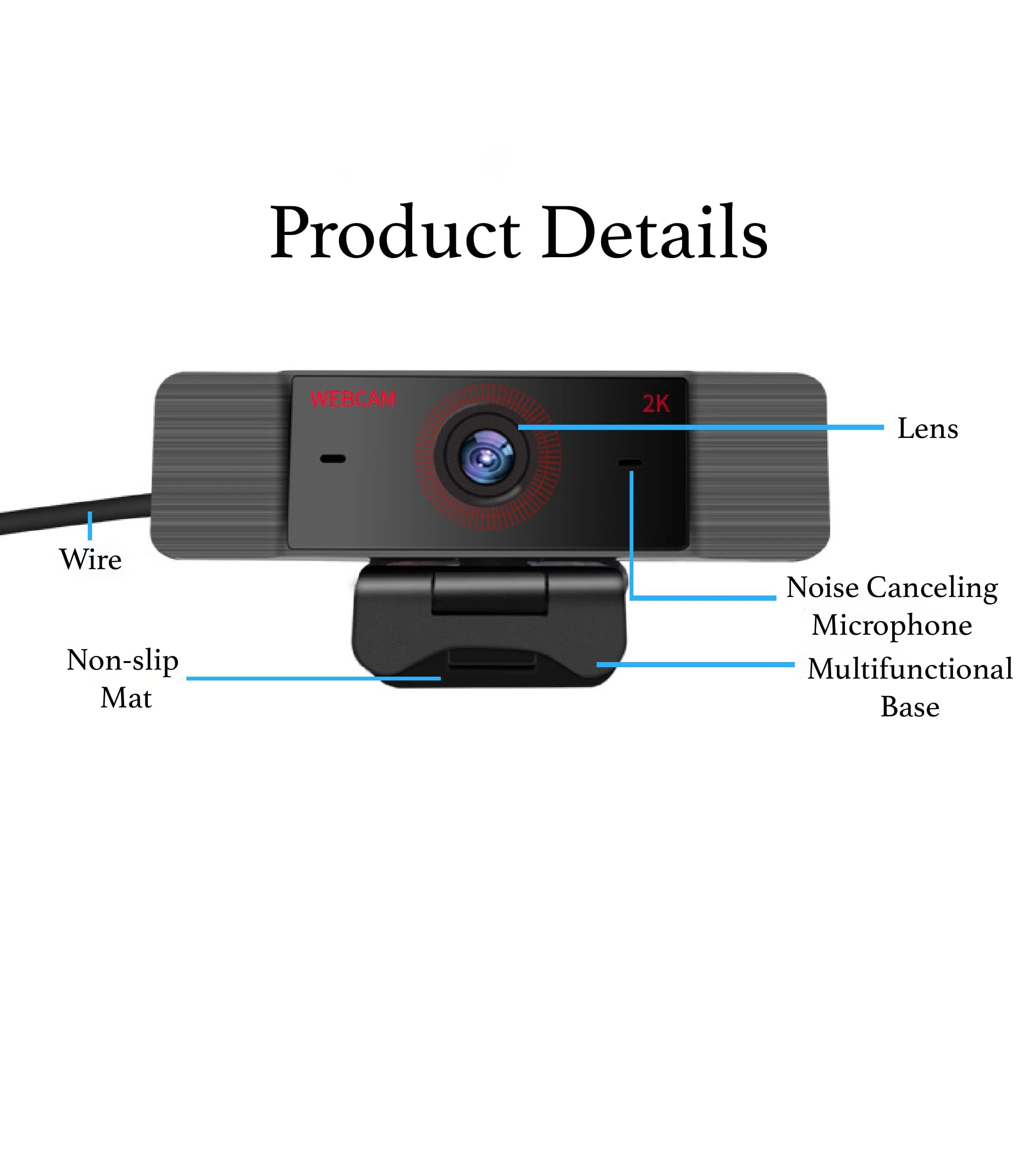 2K USB Webcam: with advanced compression technology and 2K resolution lens.