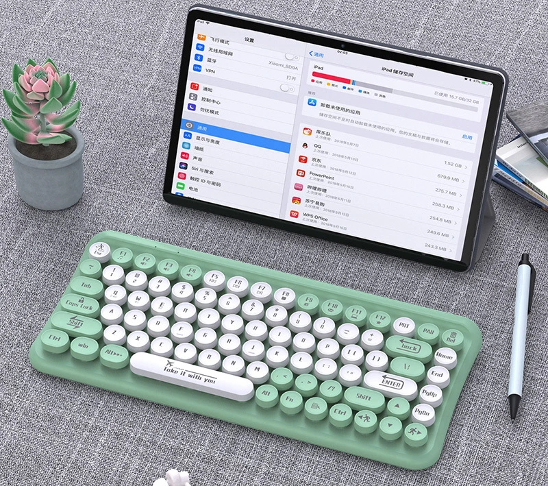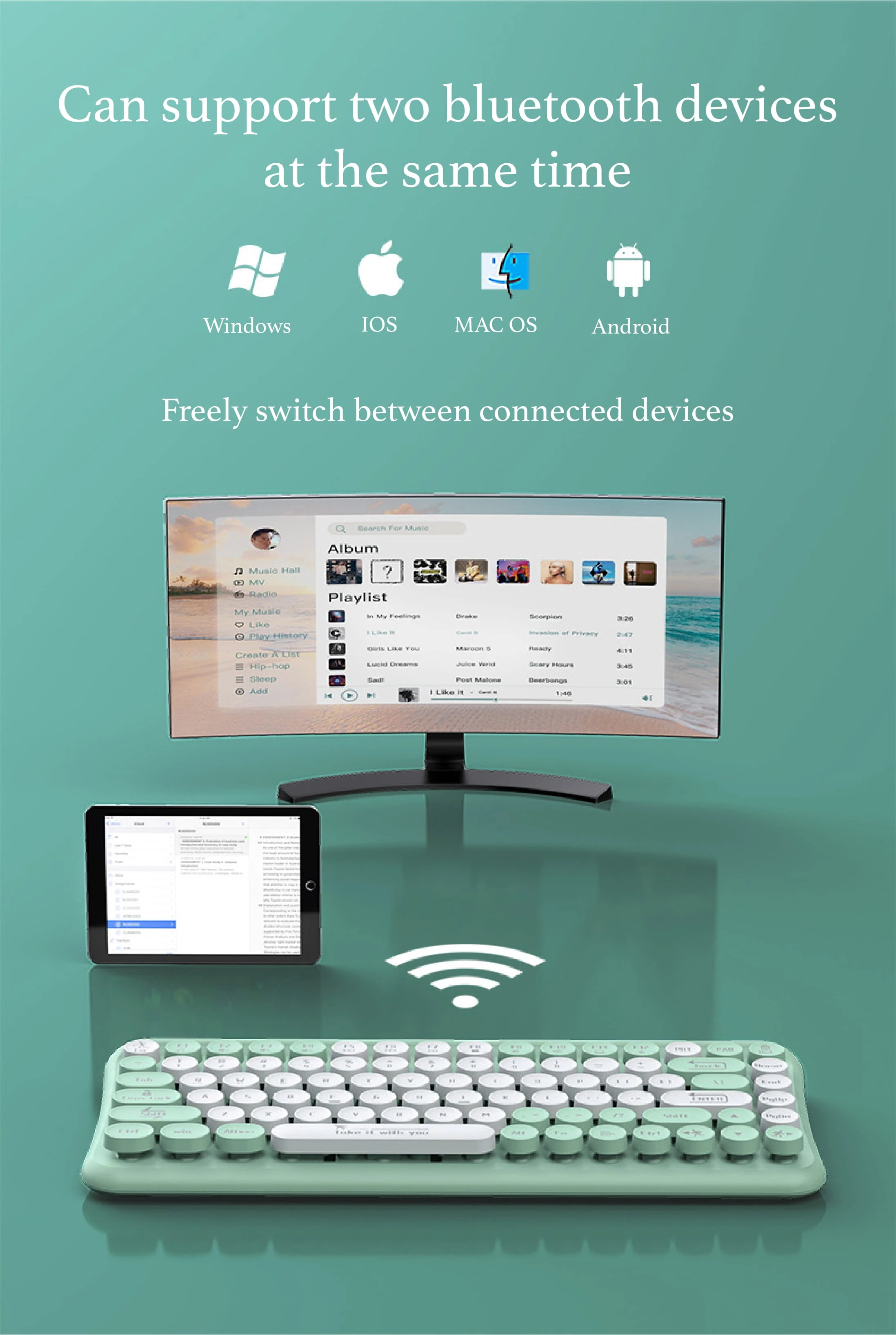 The wireless keyboard features Bluetooth 5.0 and 2.4G wireless connection technology.